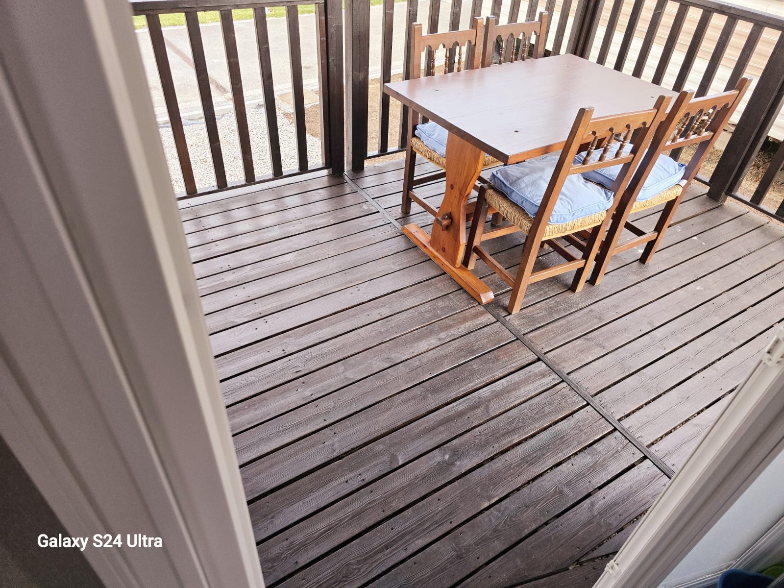 Como todos nuestros alojamientos, el Bungalow 10 está equipado con una cocina completa, baño privado, y un porche amueblado ideal para desayunar al aire libre o disfrutar de una noche fresca de verano. Además, incluye una plaza privada para aparcar el coche, una ventaja añadida si vienes con varios vehículos o necesitas comodidad de acceso.
