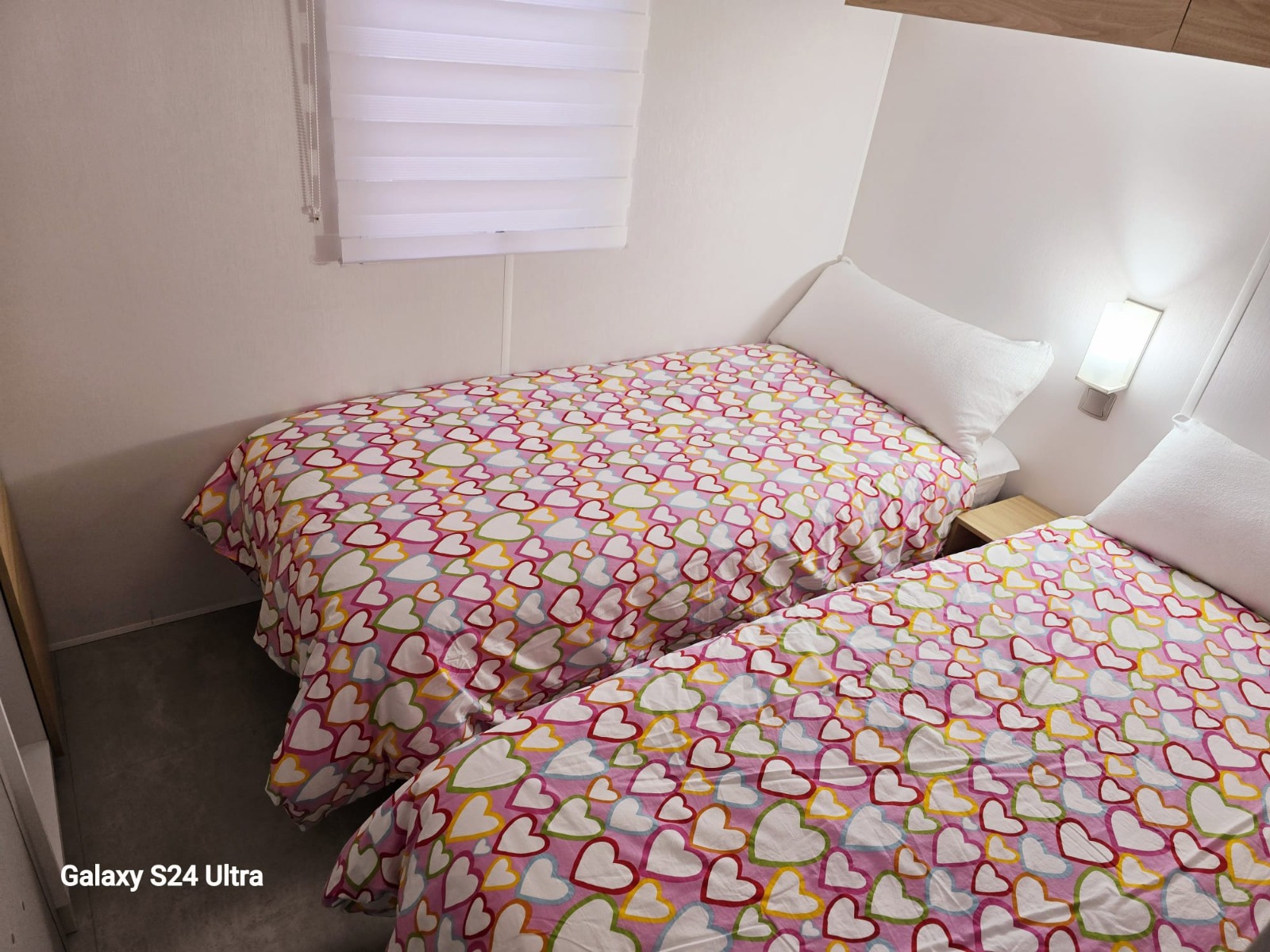 Se trata del bungalow más grande, tiene tres habitaciónes, una con cama grande y otras dos con dos camas pequeñas, indicado para familias grandes o amigos que quieren pasar un verano genial!